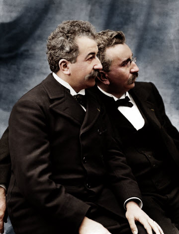 Auguste et Louis sont les premiers enfants, sur six, d'Antoine Lumière. Ils contribuent très jeunes aux travaux photographiques dans l'atelier de leur père.