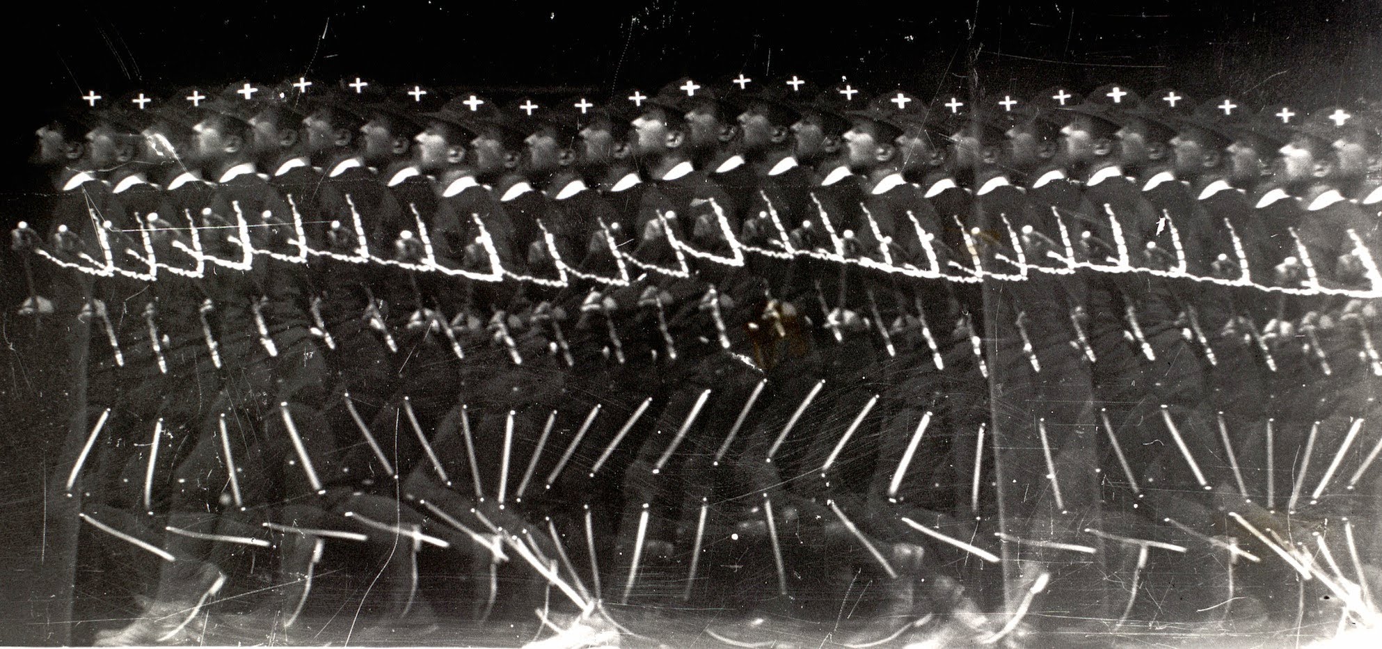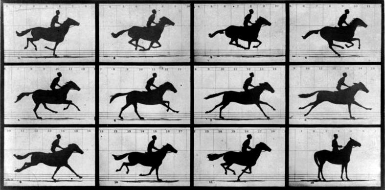 dans des positions suggérant des instants successifs d'un mouvement. La cadence rapide de leur projection sur l'écran crée l'illusion de ce mouvement.