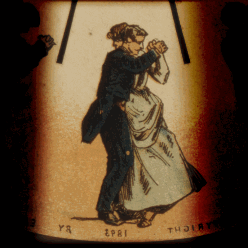 baptisé phasmatrope. Celui-ci est issu de l'accouplement d'une lanterne magique et d'un phenakistiscope. Les images sont des photographies des personnages