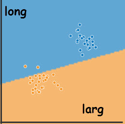 Un programme d'apprentissage répartit par classe les données qu'il reçoit et établit les limites de ces classes, frontières de décision.