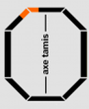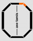 Il peut aussi, en accentuant son mouvement de poignet en brosse, toucher la cible E dans un coup court-croisé particulièrement déstabilisant pour l’adversaire.