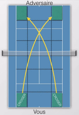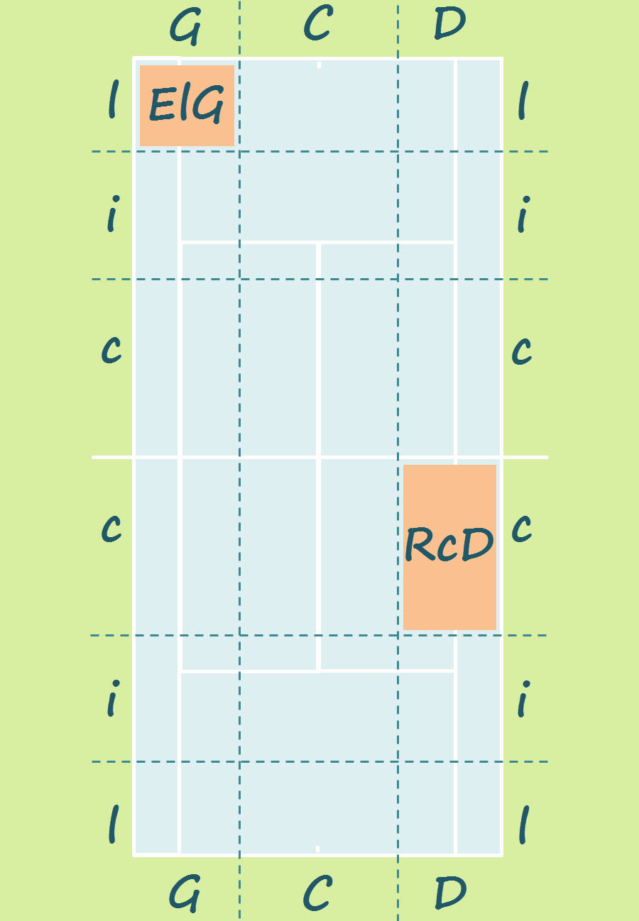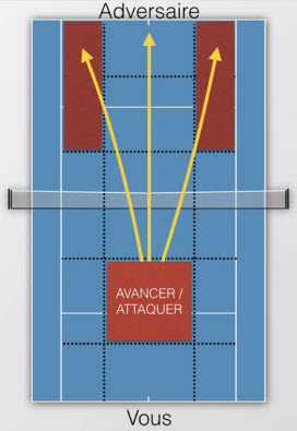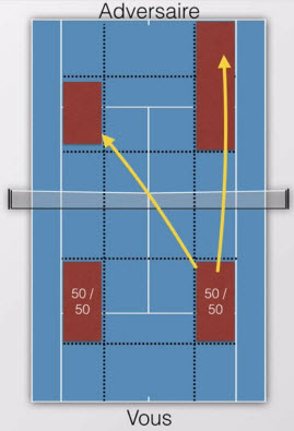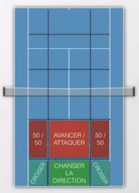 La zone intermédiaire (i) est encore une bonne zone à trouver (Eix). Cependant son adversaire peut, sur ce type de balle, avancer dans le terrain et tenter une