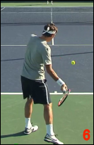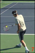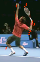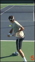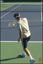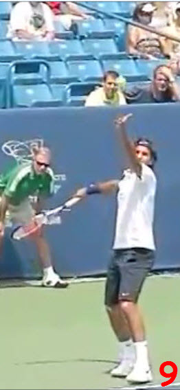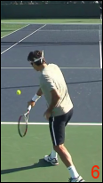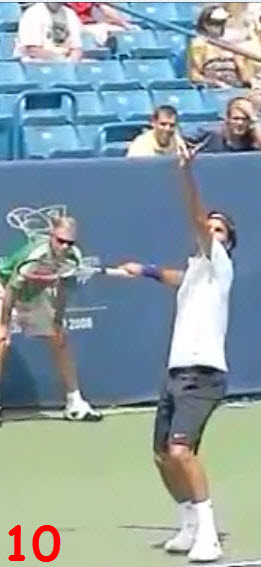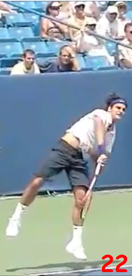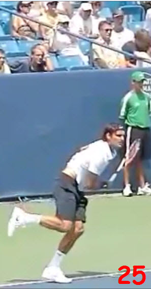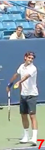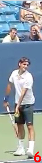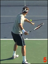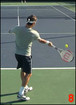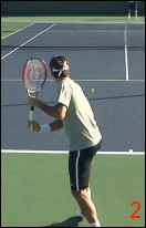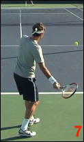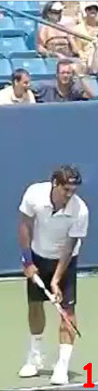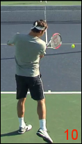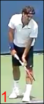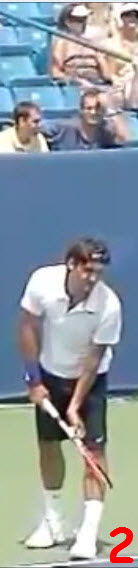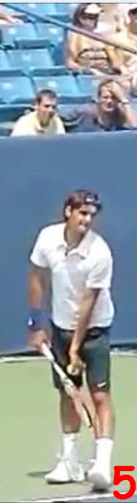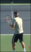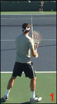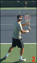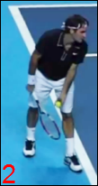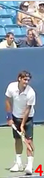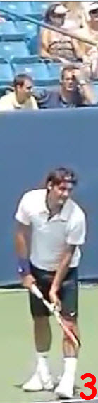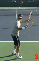 N.B. : en (2) nous voyons que Roger Federer porte la raquette à deux mains ce qui facilite l'orientation des épaules.