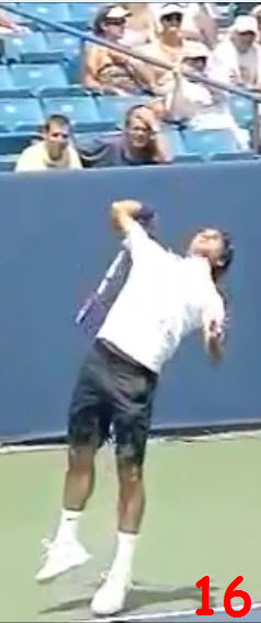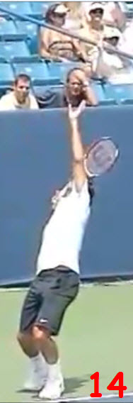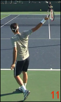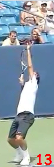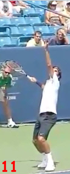 poignet et tête de raquette montante (8). Pour assurer la stabilité et l'équilibre, le bras et l'épaule libres bougent très peu pendant la phase.