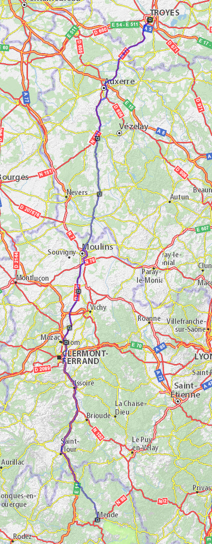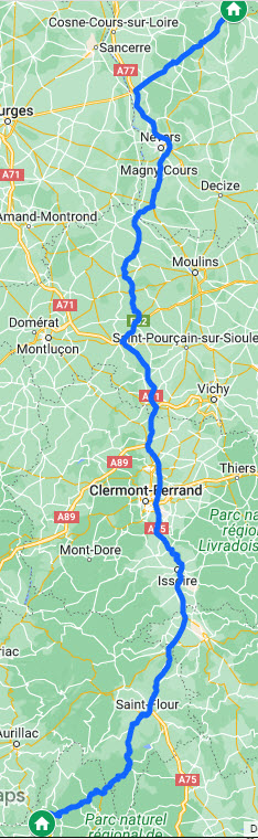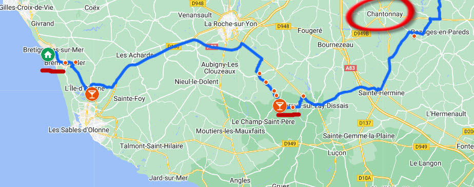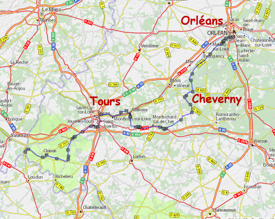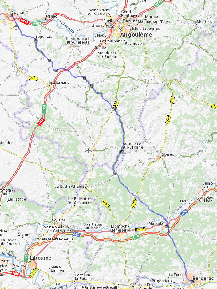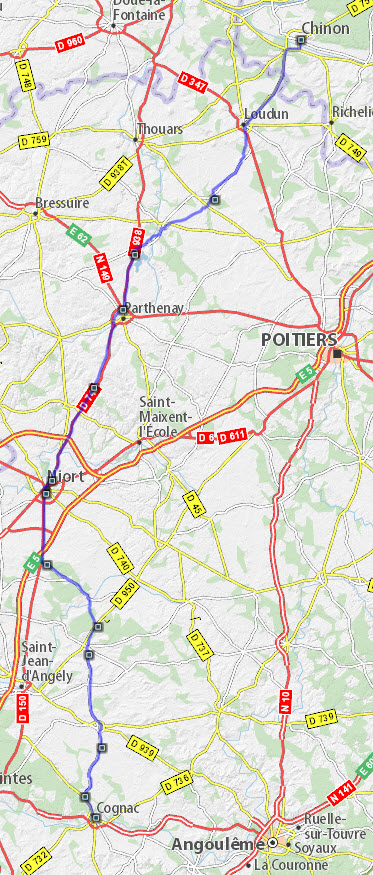 Autoroutes et nationales, 130 ou 110 km/h. J'ai préféré la N10, par Angoulème, à la A10, plus rapide mais plus longue et, je pense, plus ennuyeuse.