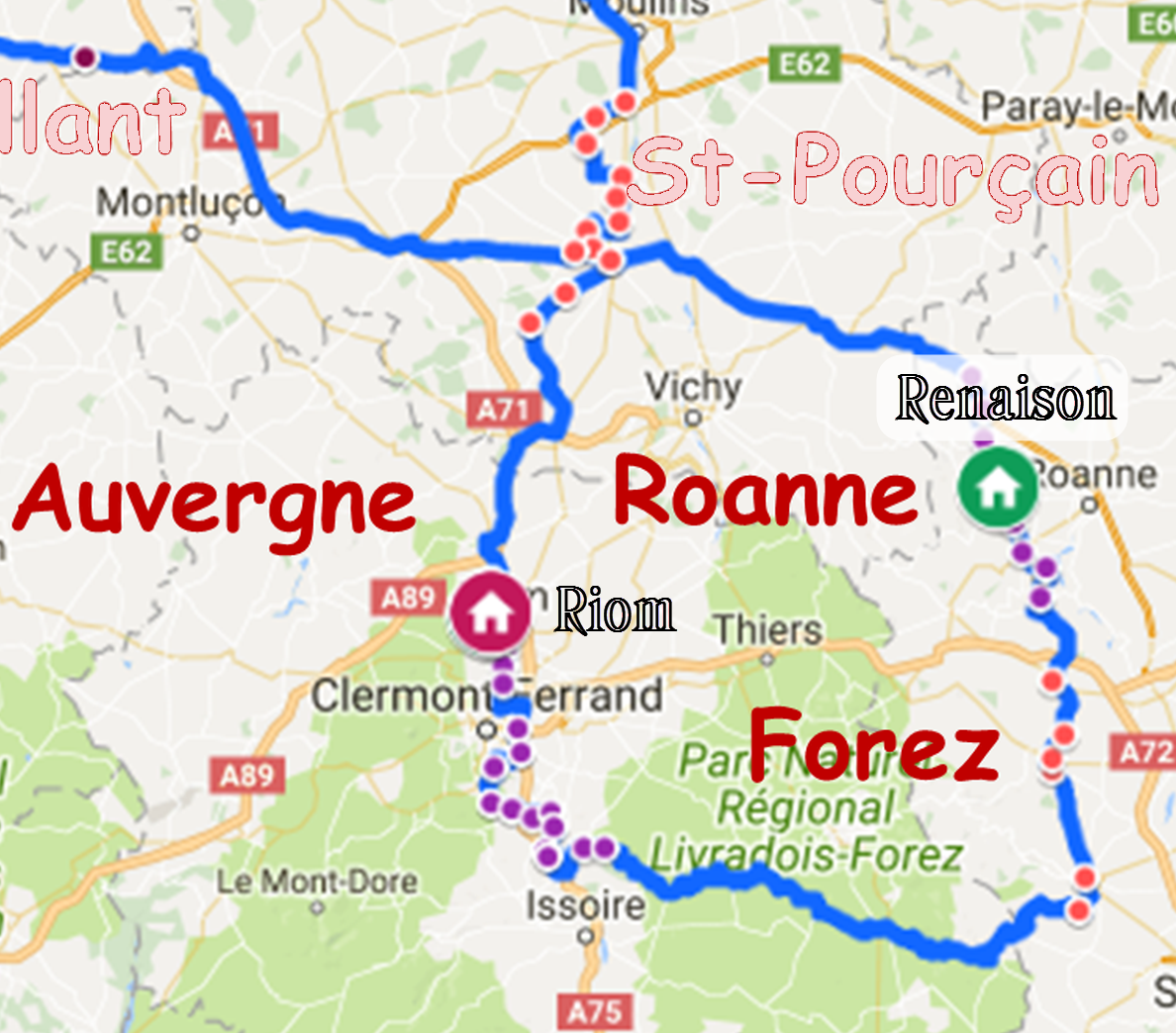 Itinéraire de retour à la maison.
