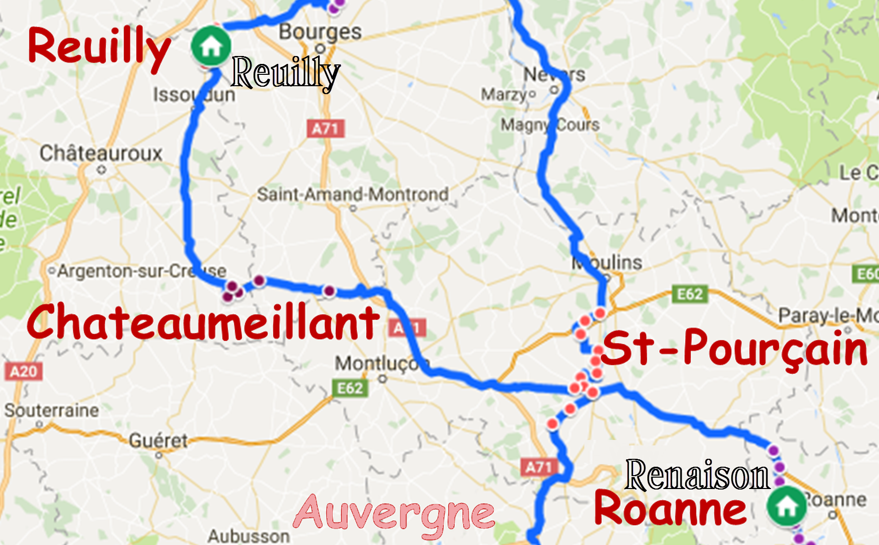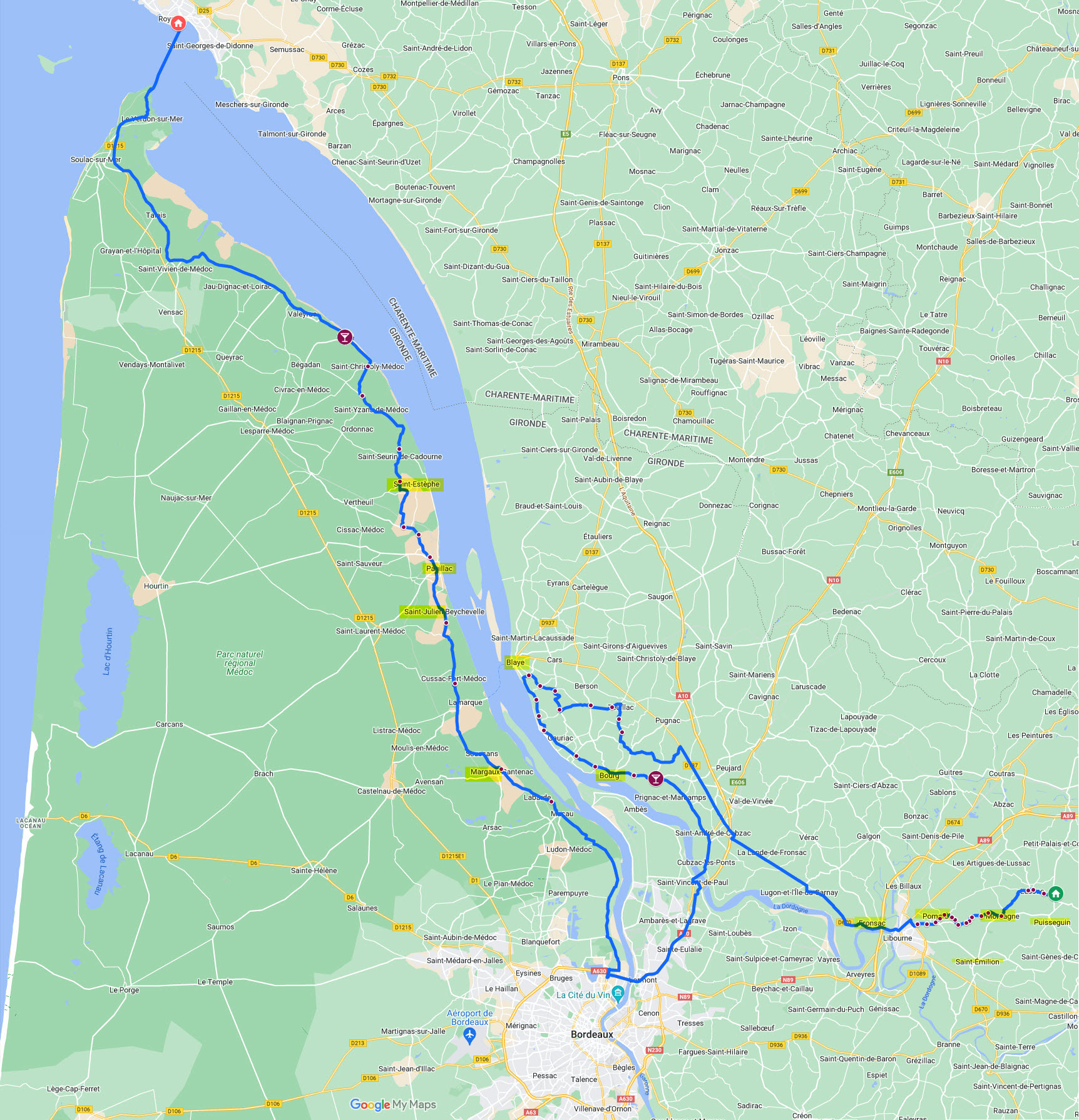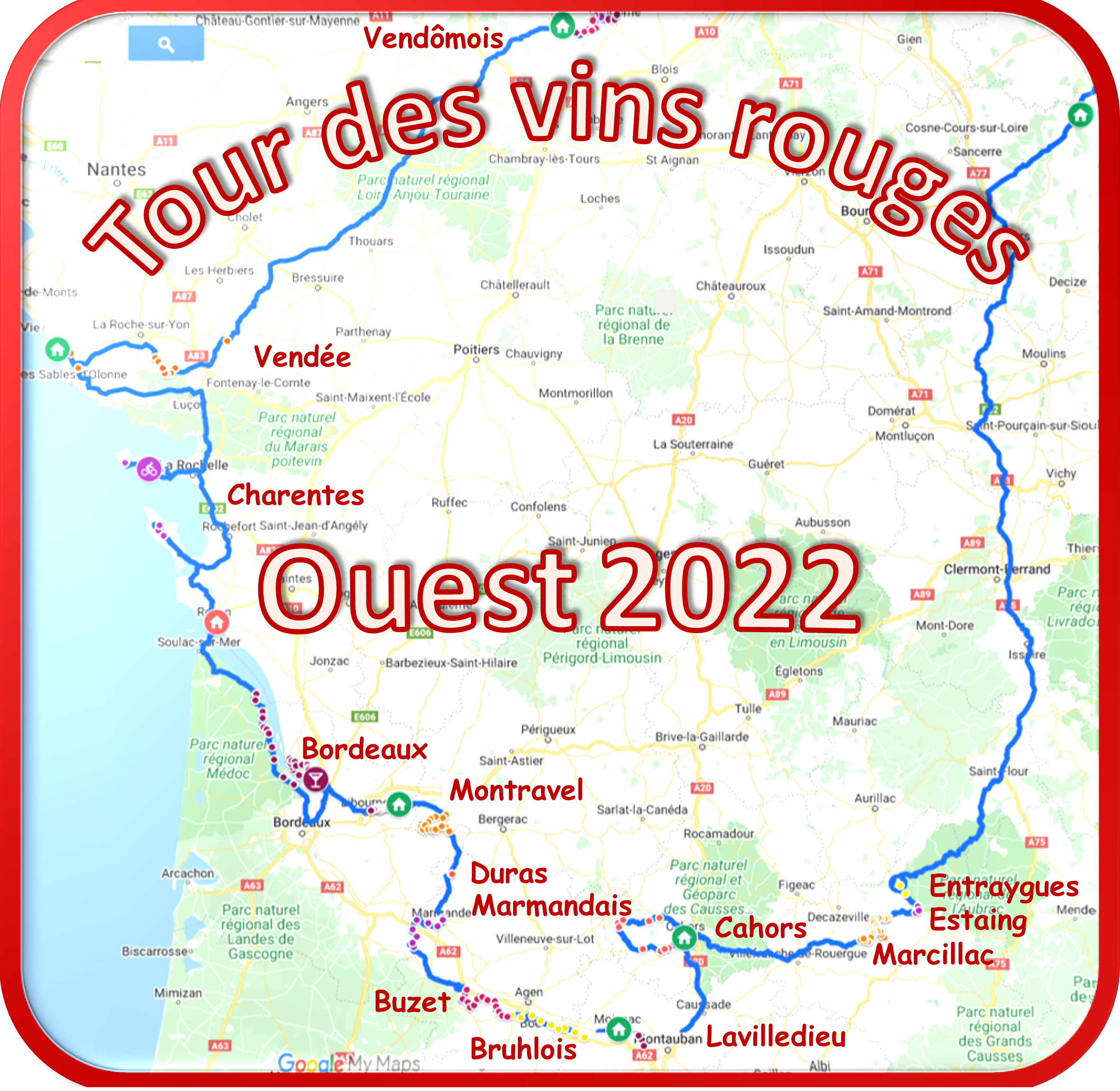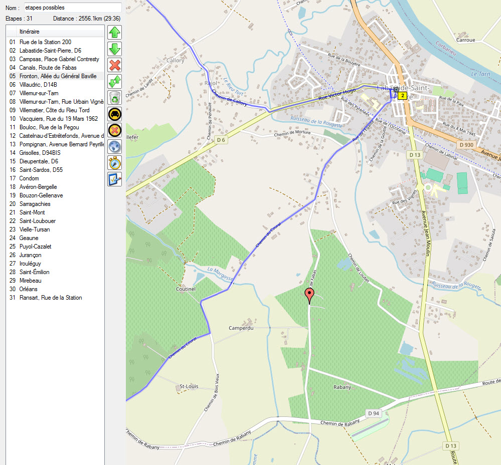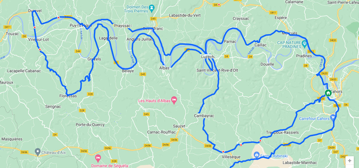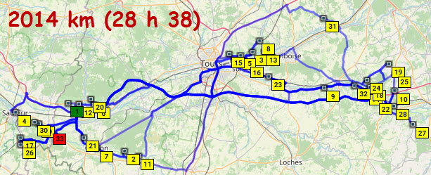 Je retire d'emblée les étapes de ralliement, Rochecorbon et Bergerac.