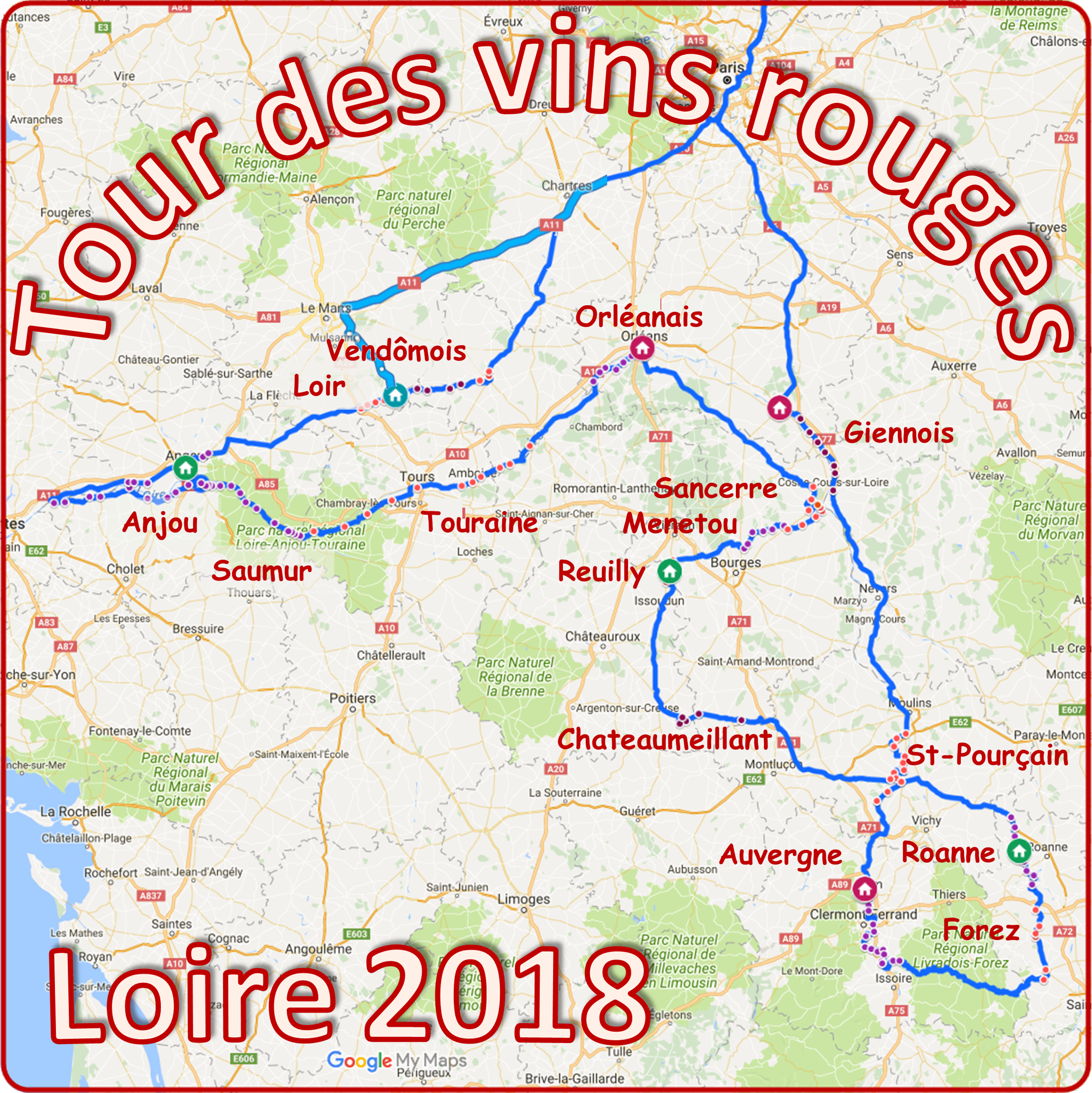 de France, avec les détails, souvenirs, anecdotes, ..., le dico du vin, les comptes rendus de mes escapades.