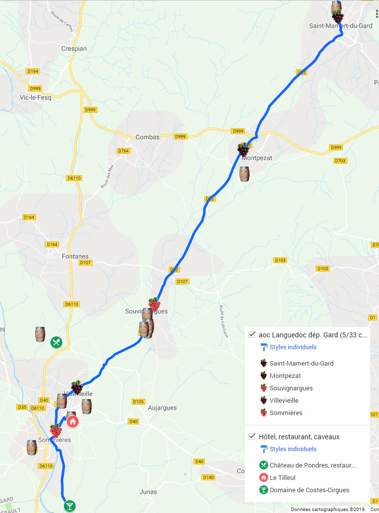 Mes tdvr commencent en 2018. À ces occasions je peux repérer, «finement», mes destinations et ne passer que dans les communes bénéficiant d'au moins 1 appellation