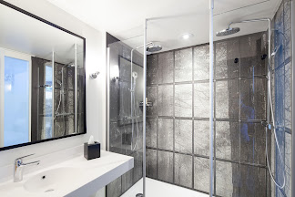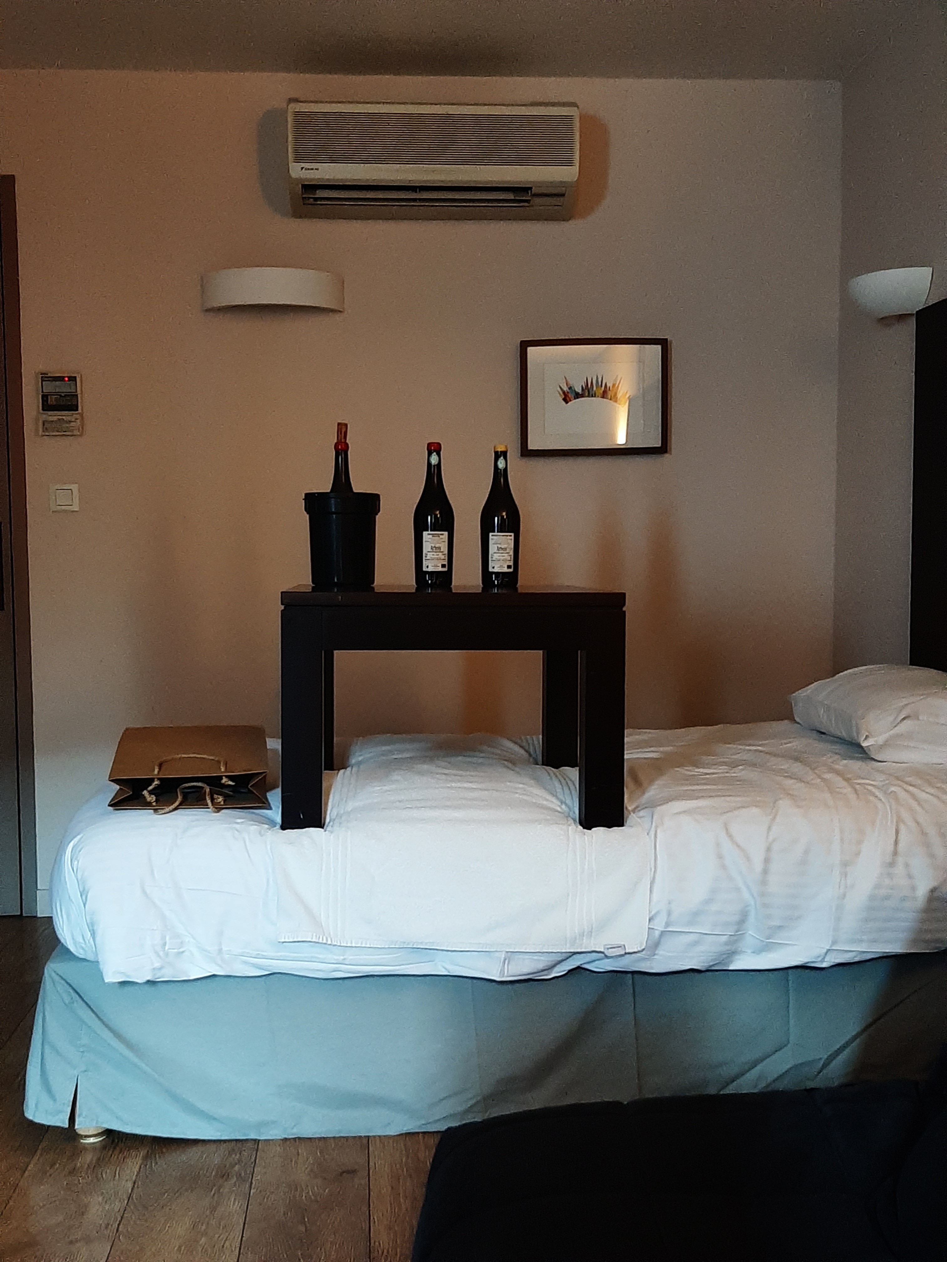 Belle chambre minimaliste, pas de clim, pas de frigo, pas de table de nuit, douche 70 cm avec vitre de 50 cm.