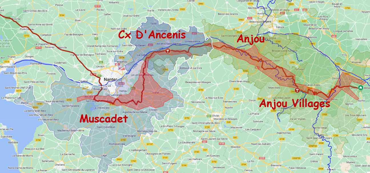 - l'Ouest, Vendômois, Vendéen, Charentais, Bordelais, Montravel, Duras, Marmandais, Buzet, Brulhois, Marcillac, Entraygues.