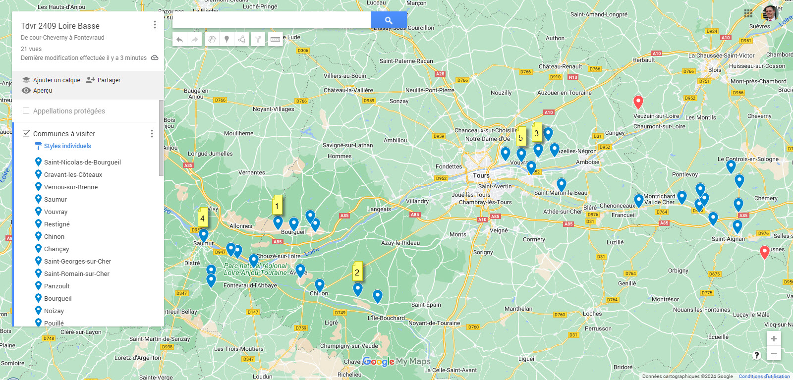 Je crée, dans My Maps, les cartes géographiques pour repérer mes destinations et mes itinéraires.
