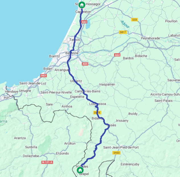 Cette étape est de trop. Sauf Pyrénées, sans aucun vignoble, la banlieue, de Bayonne à Hossegore, est moche, 30 km/h, 50 km/h, 2ème sortie du rond-point, ..., pendant plus