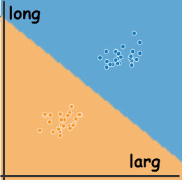 Un programme d'apprentissage répartit par classe les données qu'il reçoit et établit les limites de ces classes, frontières de décision.